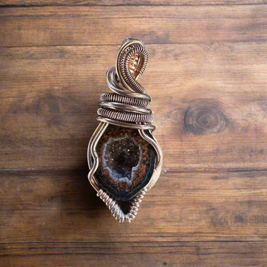 handmade copper-wrapped Tabasco geodes (sister set--available separately)