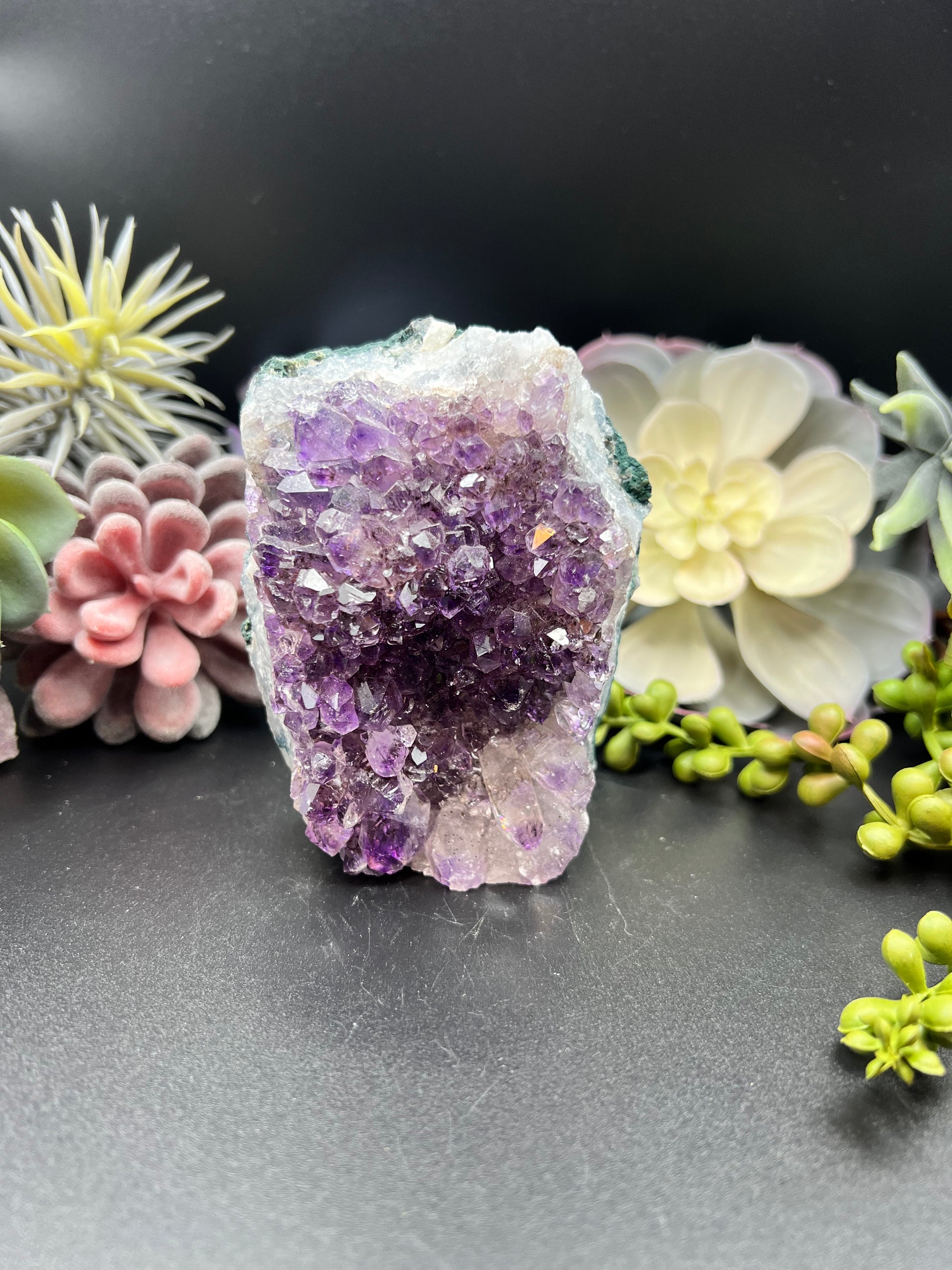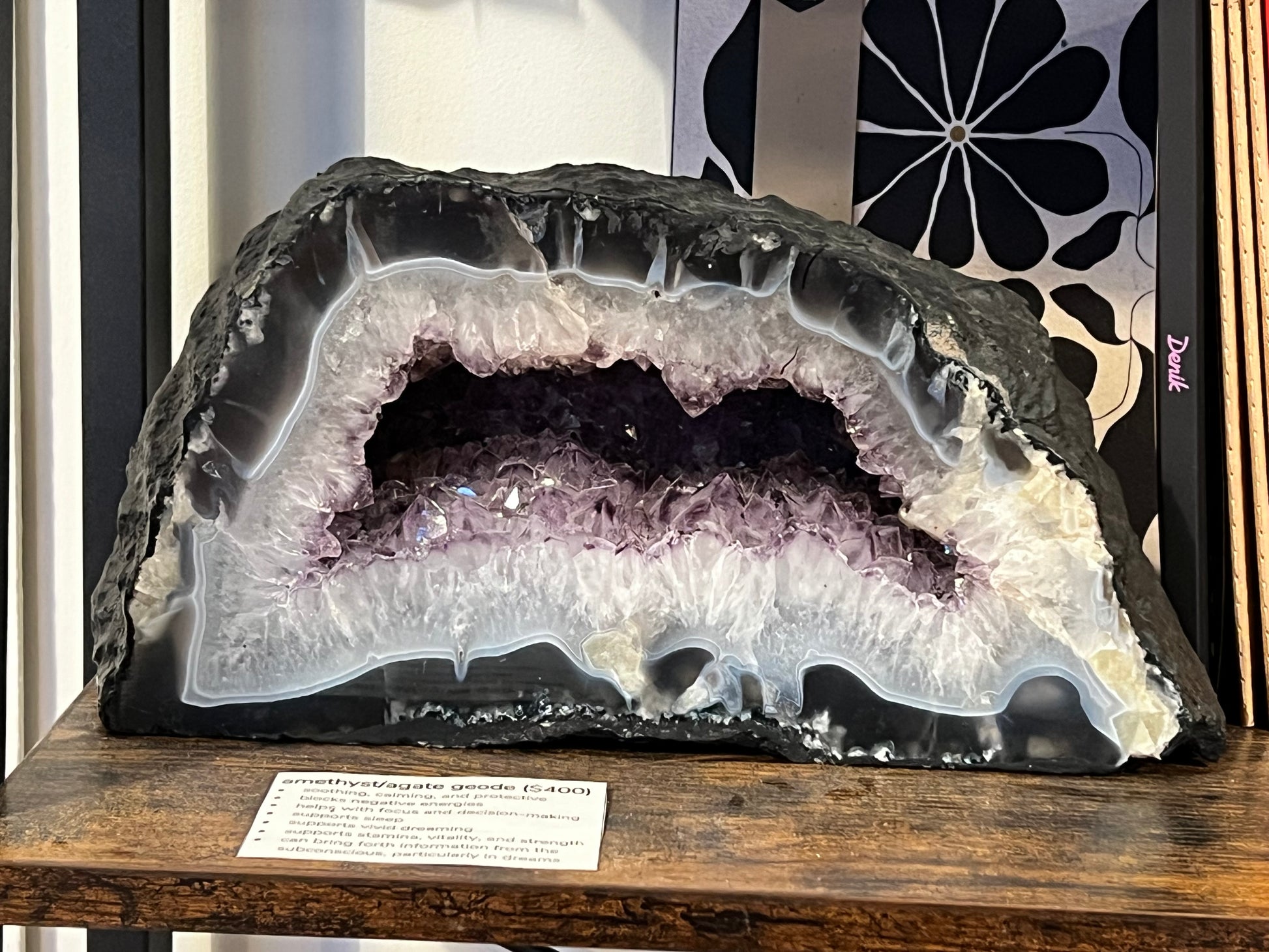 Amethyst is one of the most common and easily recognizable stones. Known for its wide variety of translucent purples, this stone is known as the “universal sobering stone”—it helps the user create calm both inside and out. Amethyst is deeply healing and soothing, helping with physical maladies as well as mental/emotional and spiritual ones. It supports good sleep if you wear it, put it next to your bed, or under your pillow. It can dispel nightmares, though it can make dreams very vivid the closer it is to your body while you sleep. It is a very protective stone and can help to dispel feelings of anxiety or stress. It can help break up addictive patterns, both in behaviors and in relationships. It is a wonderful stone to use in meditation, creating a channel to your higher self and source energy.
