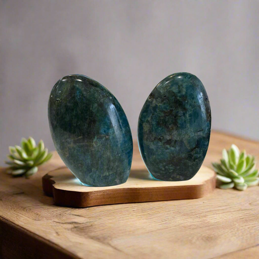 Apatite stimulates the development of psychic gifts and spiritual connection while supporting communication on all levels. It balances the user on every level: mentally, emotionally, physically, and spiritually. It increases motivation and draws off negativity while enhancing creativity and intellect. It eases frustration and confusion, irritability, sorrow, anger, and apathy. It encourages healthy behaviors that support the body, particularly healthy eating.