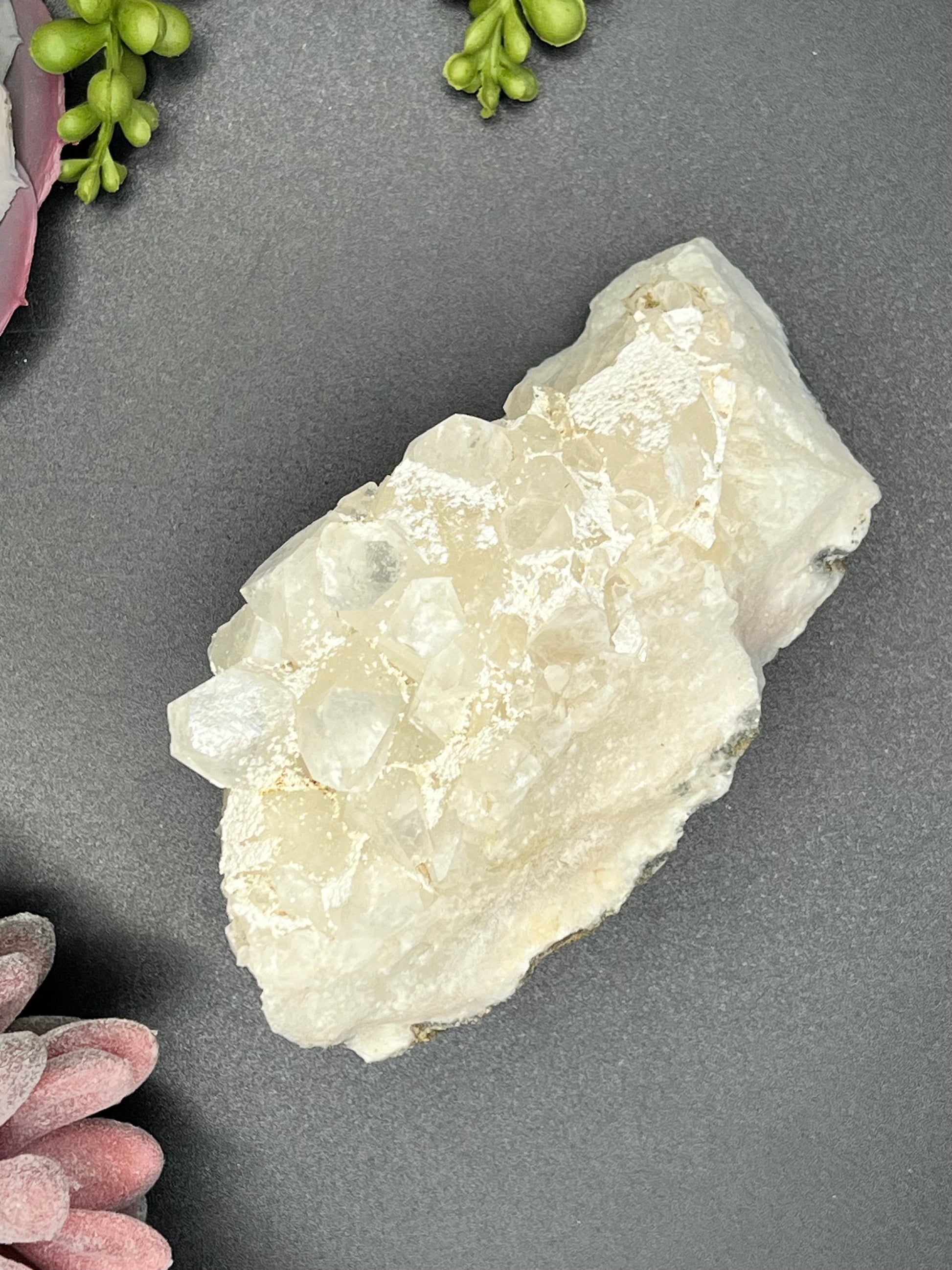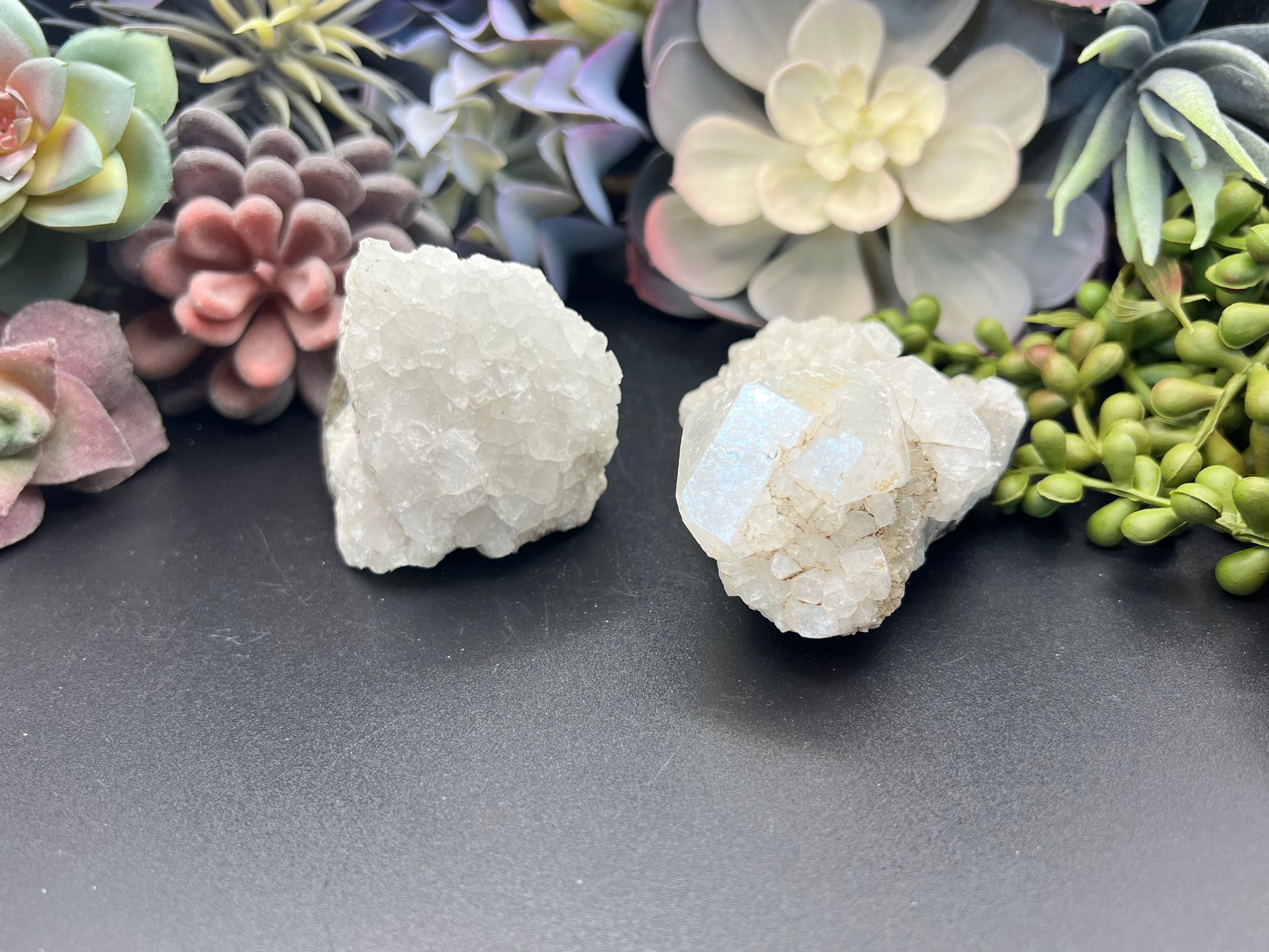 Apophyllite looks a lot like clear quartz, but it’s somehow even more clear and sparkly, often with smaller points. This beautiful stone connects to the angelic realm, helping to calm the mind and clear negativity. It is a very spiritual stone with especially high vibrations that includes both masculine and feminine energies that work together to gently connect the user to the highest realms, to deep insight, and even deeper healing. It can be used to support memory, relieve stress and anxiety, and let go of negative thought patterns.