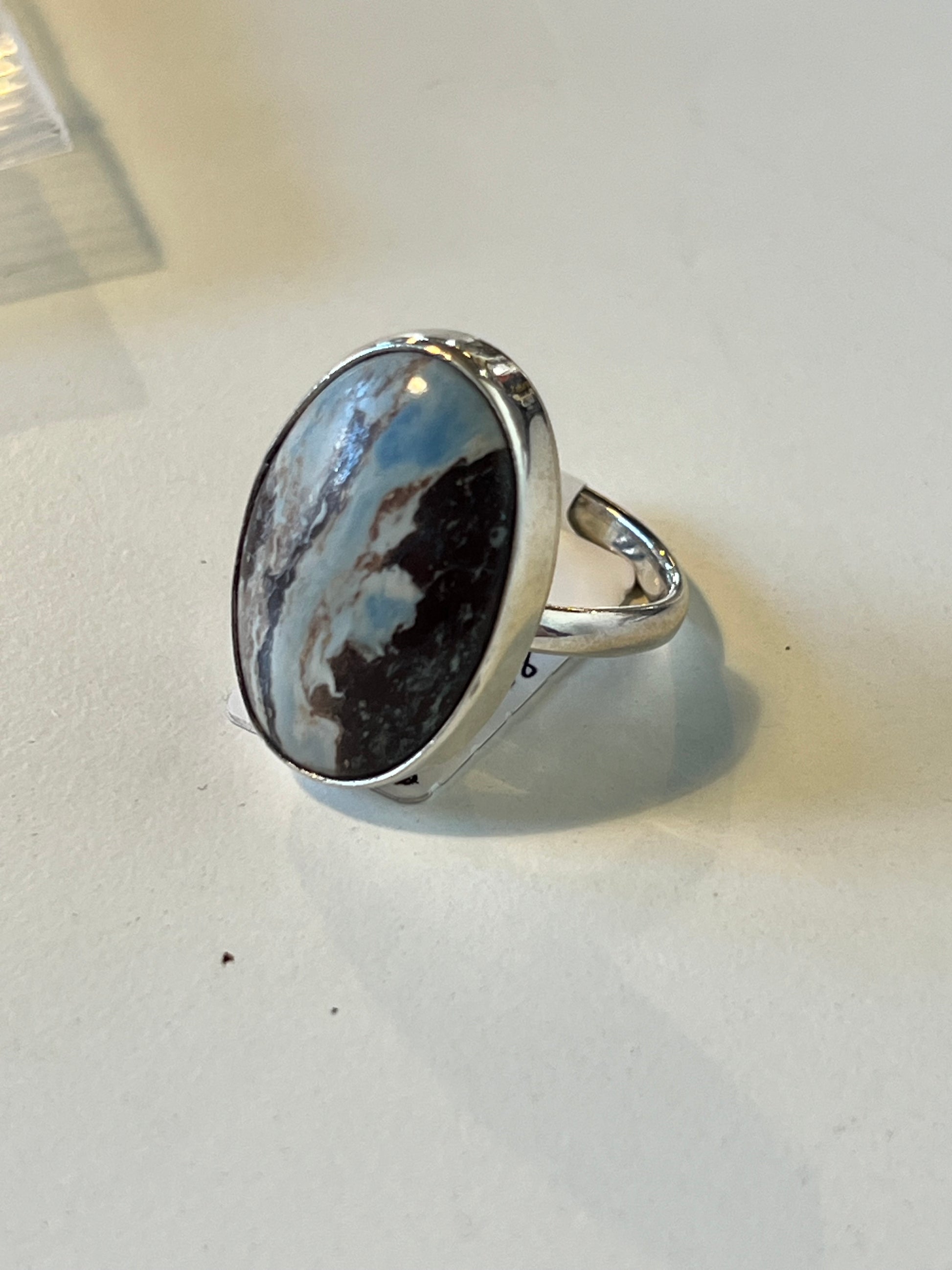 These rings have thick, sturdy adjustable bands, and the metal is 95% pure silver (rather than the 92.5% of most silver jewelry). They are hand-made in Mexico by a talented artisan who sells directly to vendors.