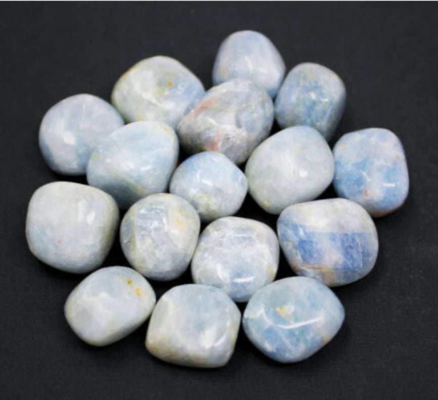 All forms of calcite help with creating calm, balance, and earth-connectedness. Additionally, blue calcite balances emotions, calms anxiety, and soothes frayed nerves.