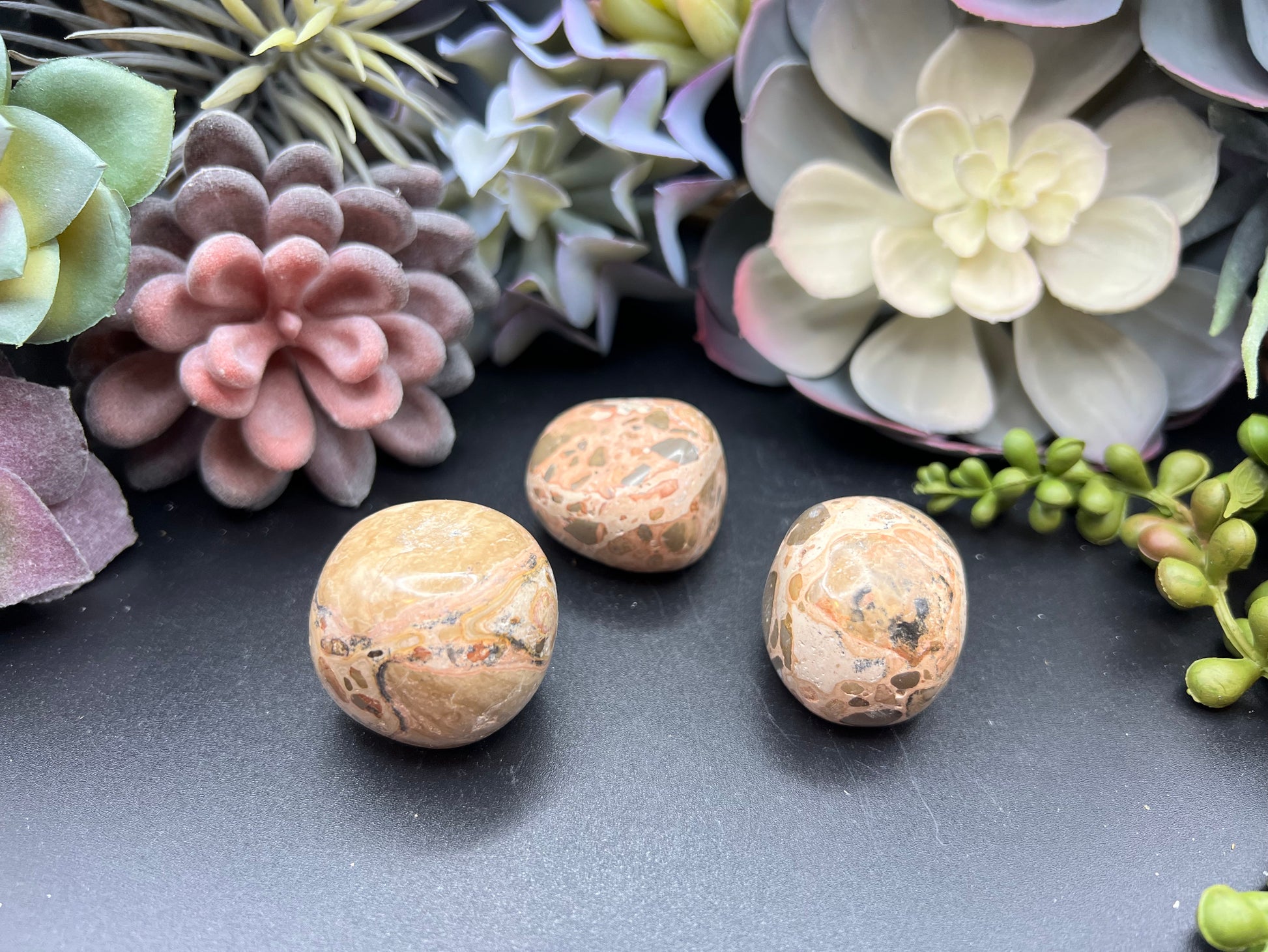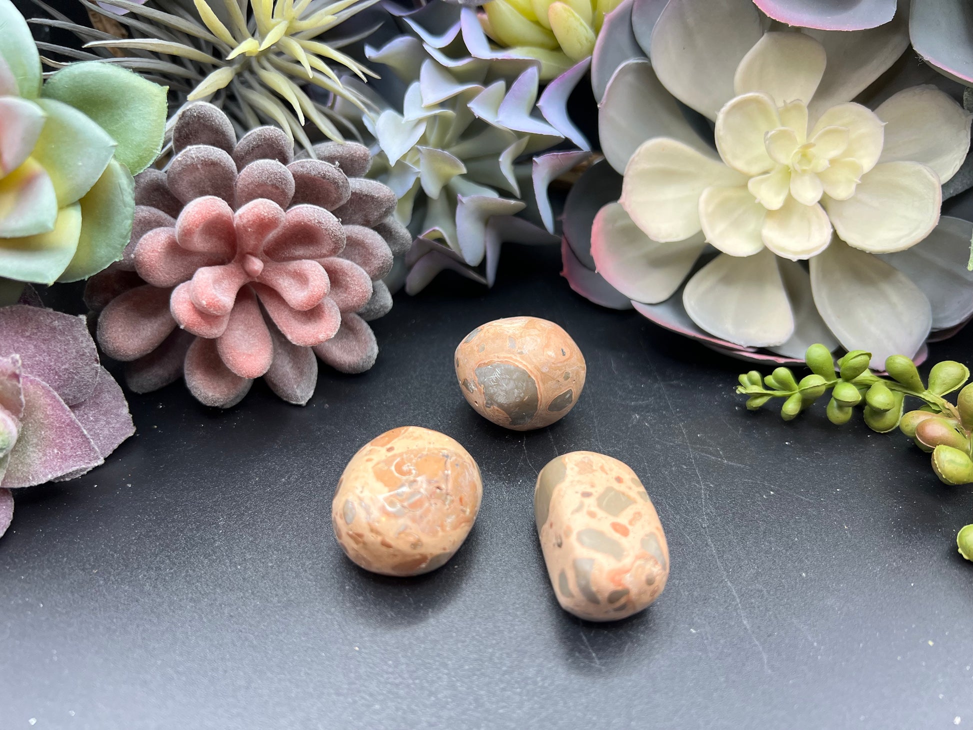Brecciated jasper is a varied stone that comes in tones of red, orange, and peach due to a high iron content. It is identified by its almost spotted pattern. It supports mental clarity and focus. It can help to increase organization while helping to decrease stress. It calms while helping to bring a sense of understanding toward others. It brings love and tolerance for others. It can support in working out problems and in enhancing willpower and confidence. It also brings balance and protection.