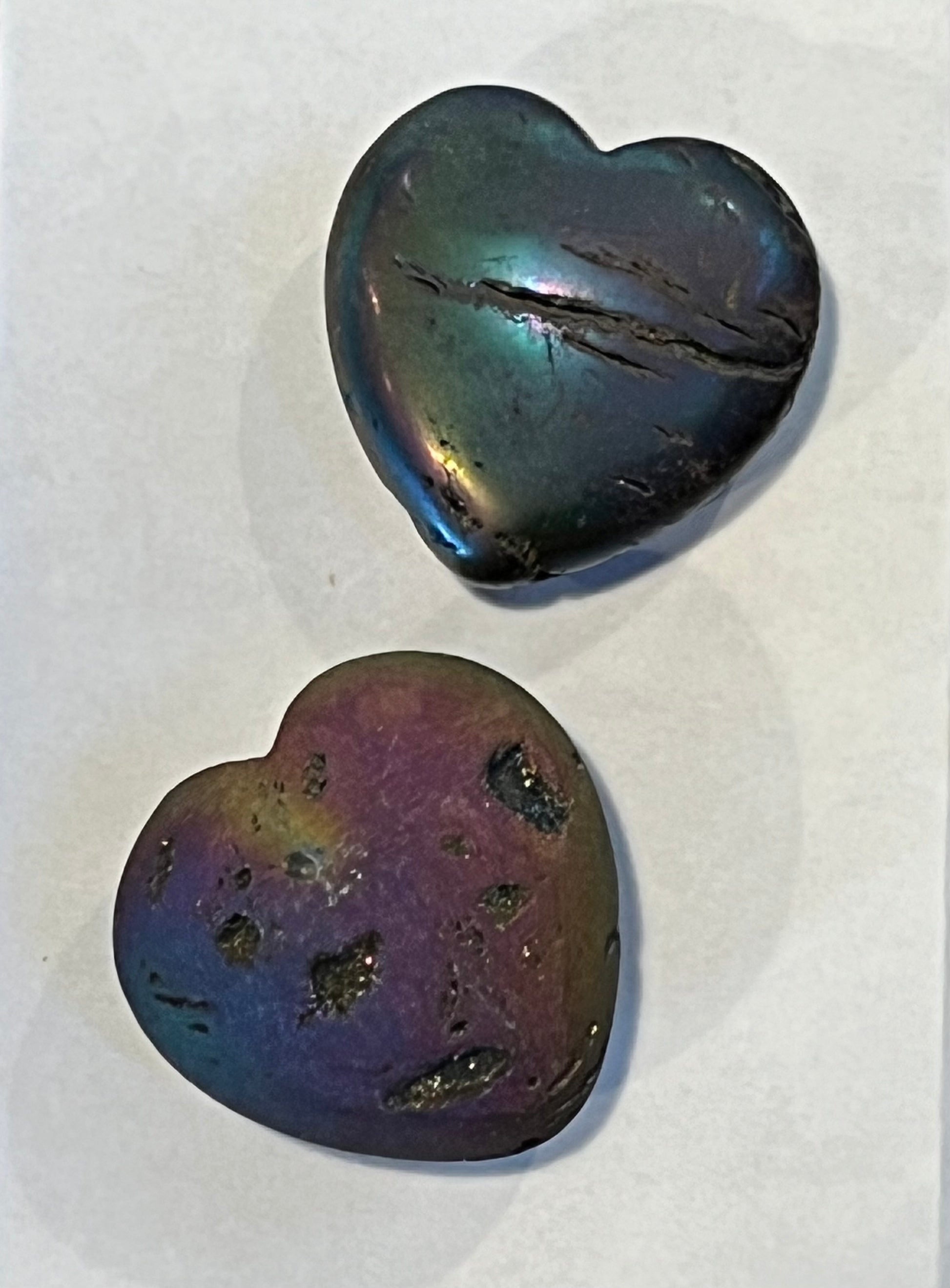 Chalcopyrite, or peacock ore, gets its name from the colors created by the oxidation of iron the surface of the stone. It is a very supportive stone that can help in beginning new habits, practices, or endeavors (particularly related to self-care). It helps to improve feelings of self-esteem, releasing self-doubt, stress, anxiety, and fear. It removes energy blockages and helps to balance all of the chakras and the entire energy body. It can also help to stimulate new ideas.