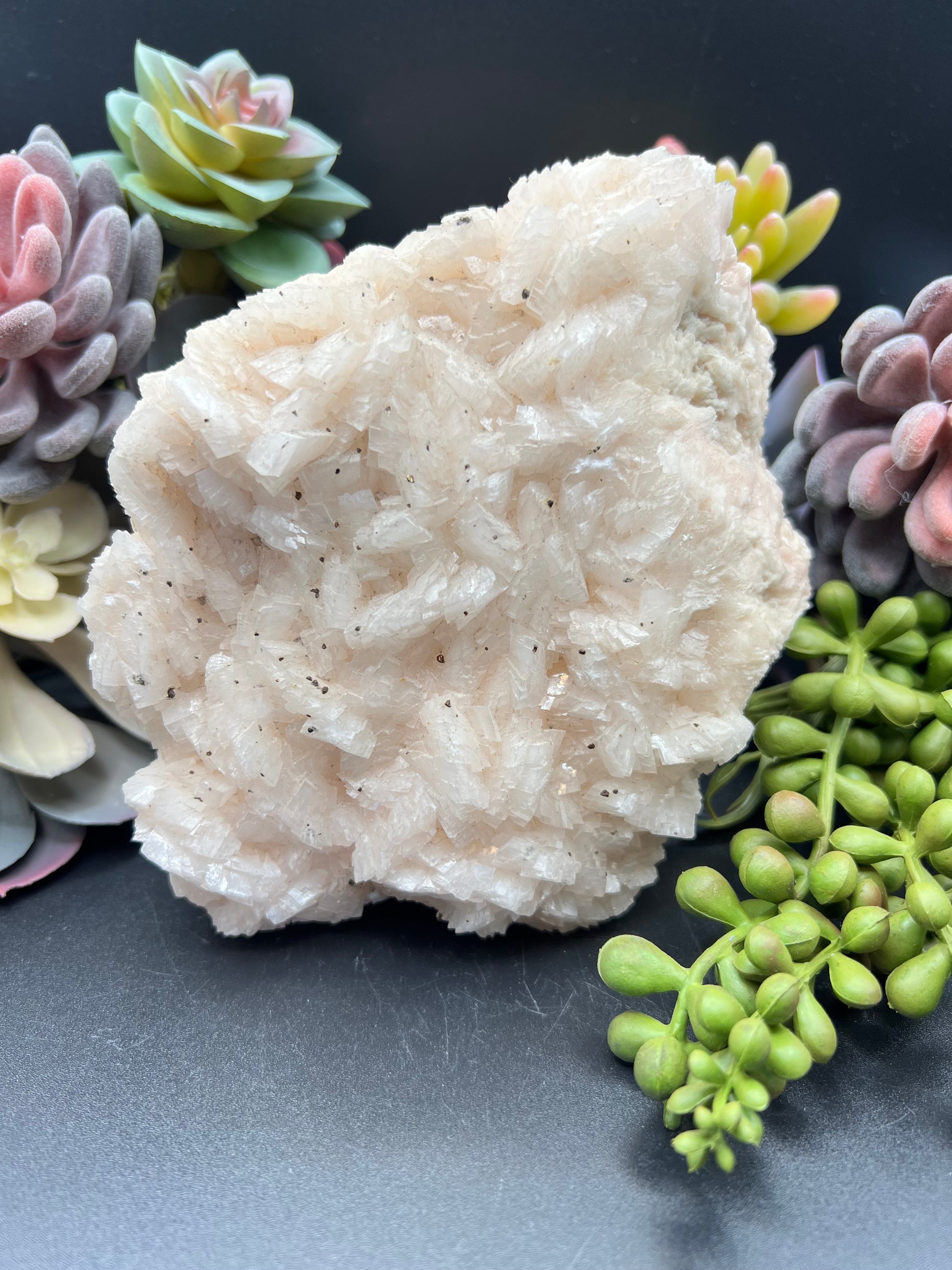 Dolomite is a gentle stone that supports mercy, unselfishness, and giving of all kinds. It enhances creativity and creative expression, helping to support manifesting the authentic inner self. It seals energy leakages from chakras, balances and aligns the whole chakra system, and stabilizes energy. Dolomite supports healing emotional wounds, loneliness, and anxiety while soothing anger and negative reactions. It brings joy and a positive attitude. Dolomite should be cleansed with sacred smoke, energy, sunlight, or moonlight—DO NOT GET IT WET! Because of its mineral composition, it can be damaged by water.