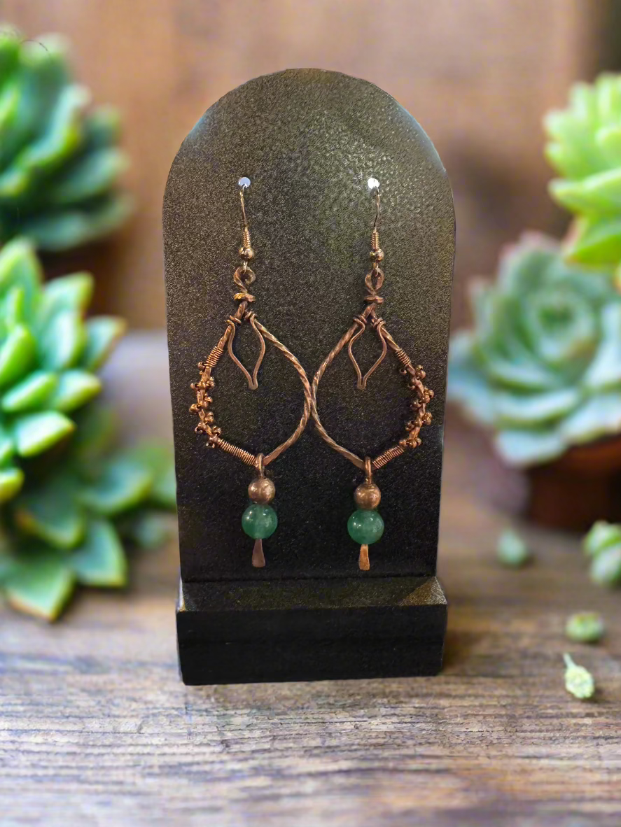 handmade green aventurine and copper earrings
