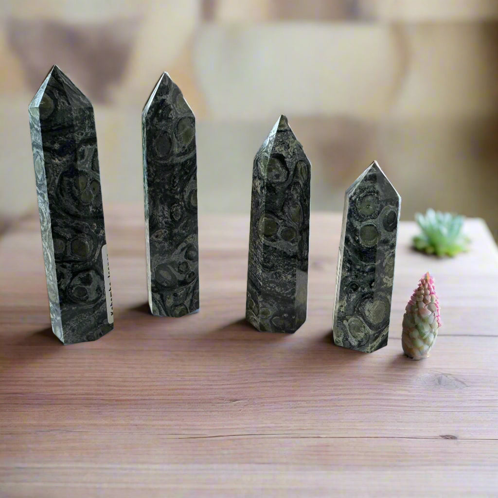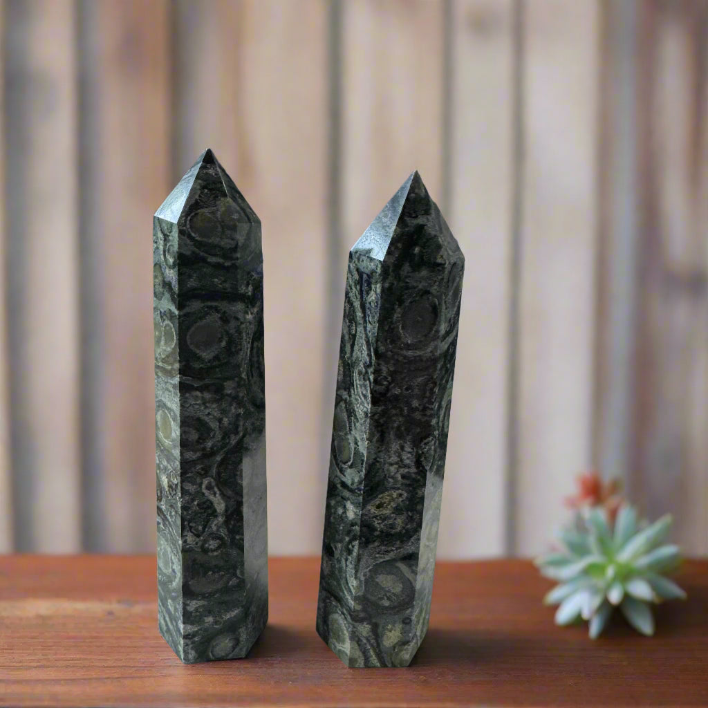 Kambaba jasper is actually fossilized algae that is over a billion years old. It is a wonderful aid in meditation, as it can connect the user to the web of life. It calms the mind while boosting confidence, reducing feelings of fear and worry. It can help detoxify the body and support the immune system, while offering emotional balance, particularly at challenging times. It resonates with the root and heart chakras, helping to clear blockages in those areas.