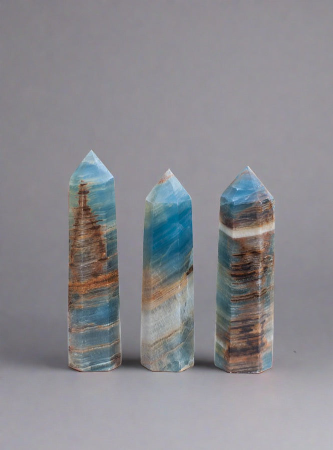 All forms of calcite help with creating calm, balance, and earth-connectedness. Additionally, Lemurian aquatine calcite vibrates with the energy of “flow,” resonating with the consciousness of the ancient highly spiritual civilization of Lemuria. This powerful stone connects the heart, third eye, and crown chakras, which further helps to balance and calm emotions. It opens the user to a higher dimensional consciousness to connect with higher self and guides.