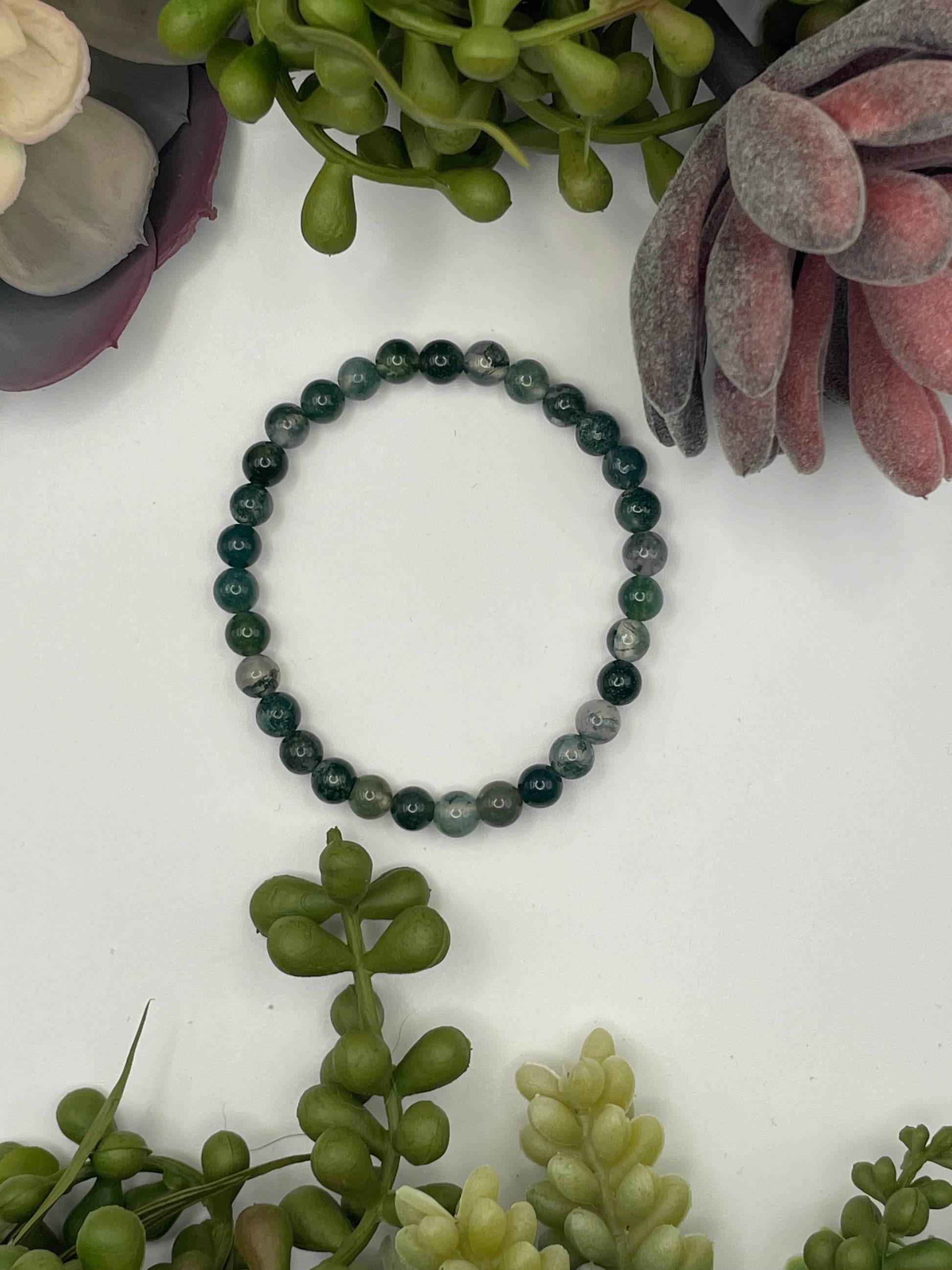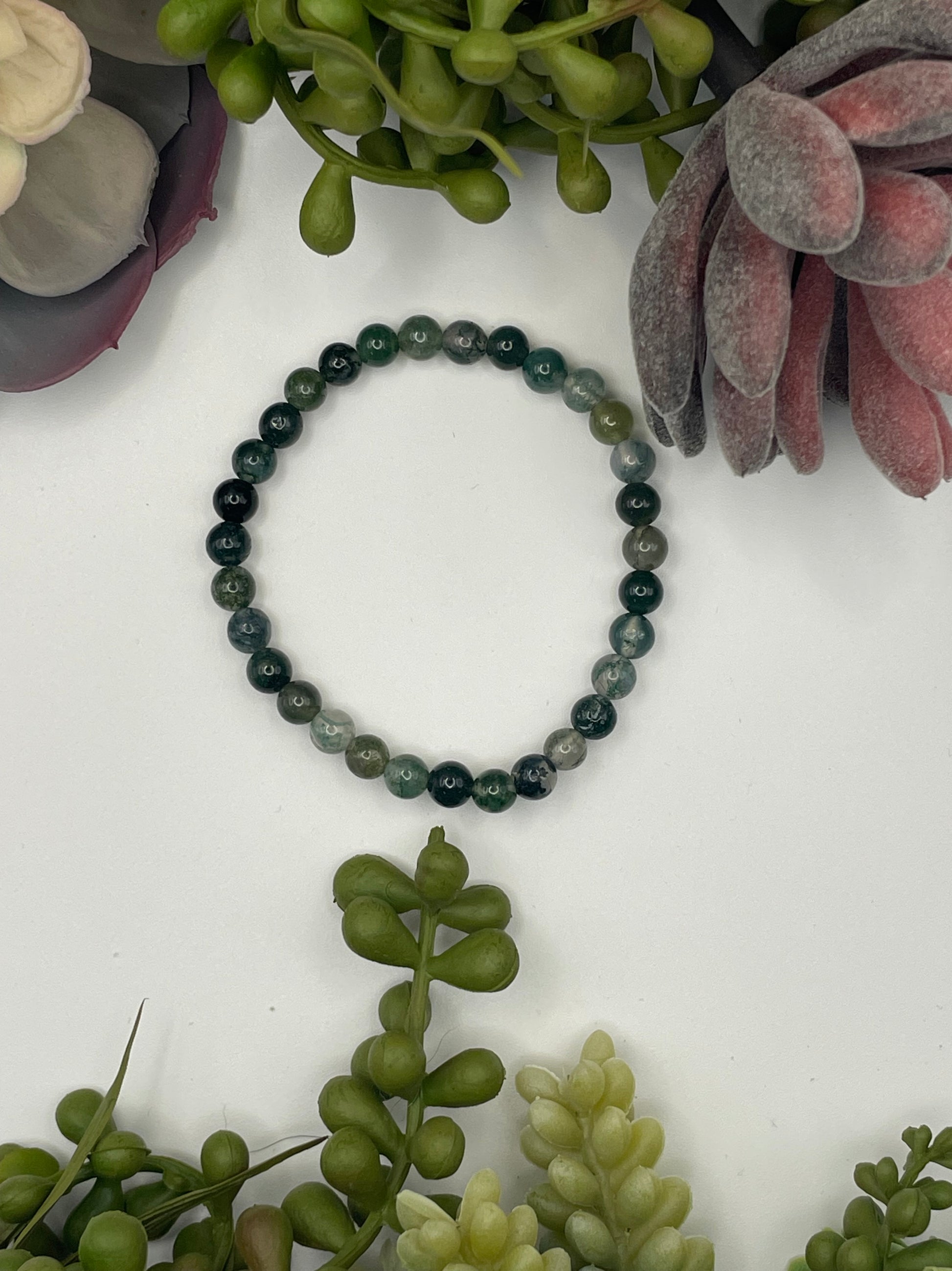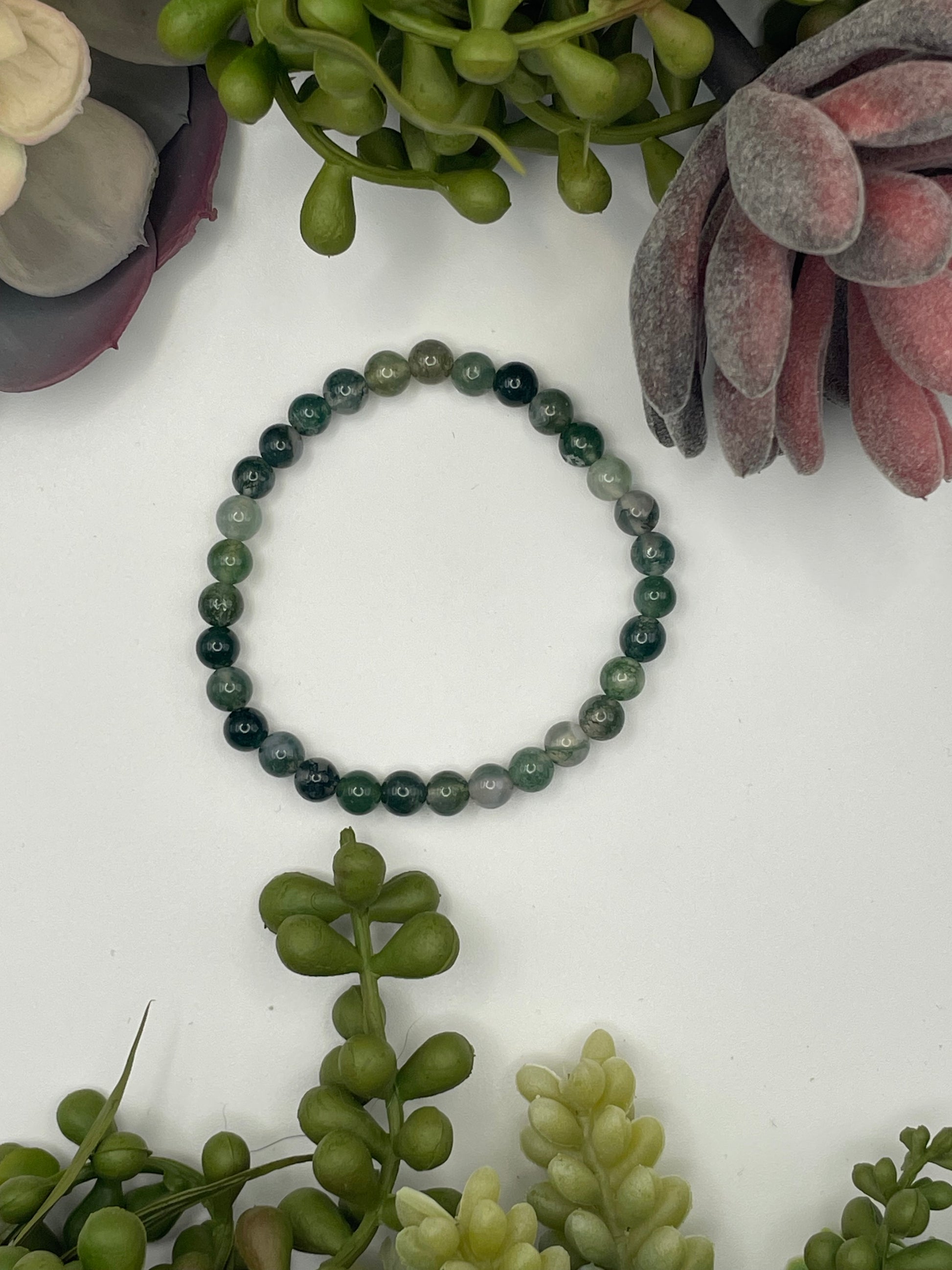 Moss agate, like all stones, carries the energy of the earth, but this stone particularly connects with all of the green life that grows here. It brings abundant harvests—of all kinds—wherever it is used. It is deeply heart-healing, keeping you connected to your roots in the earth, and bringing the peace and calm of nature to even the most tumultuous of circumstances. It cleanses you energetically, releasing anything not aligned with your own growth and bringing you back into balance with yourself and with the cycles of the earth. It supports your immune system, balances your moods, and enhances self-esteem and self-love. It helps to nurture great friendships and to create peace in relationships.