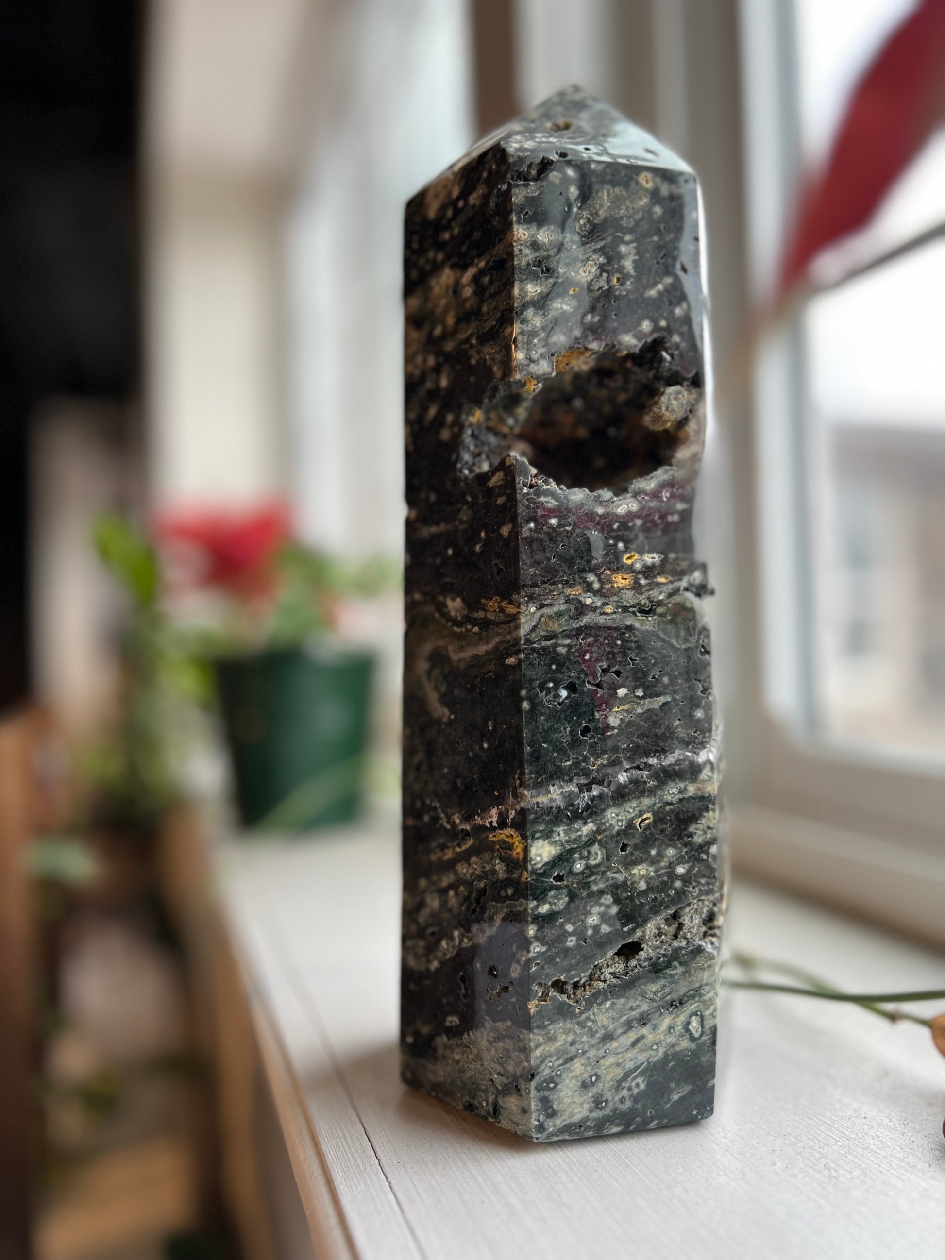 Ocean and sea sediment jaspers channel the energy of the ocean, offering its user calm, tranquility, and peace. They can support optimism, even in trying times, while enhancing clear communication. They support self-confidence and insight, and they can help release negative feelings while supporting better sleep.