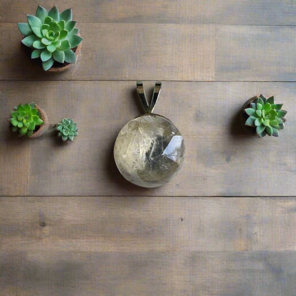 This delicate pendant features a beautiful faceted piece of rainbow moonstone (approximately 3/4" in diameter) mounted on silver.