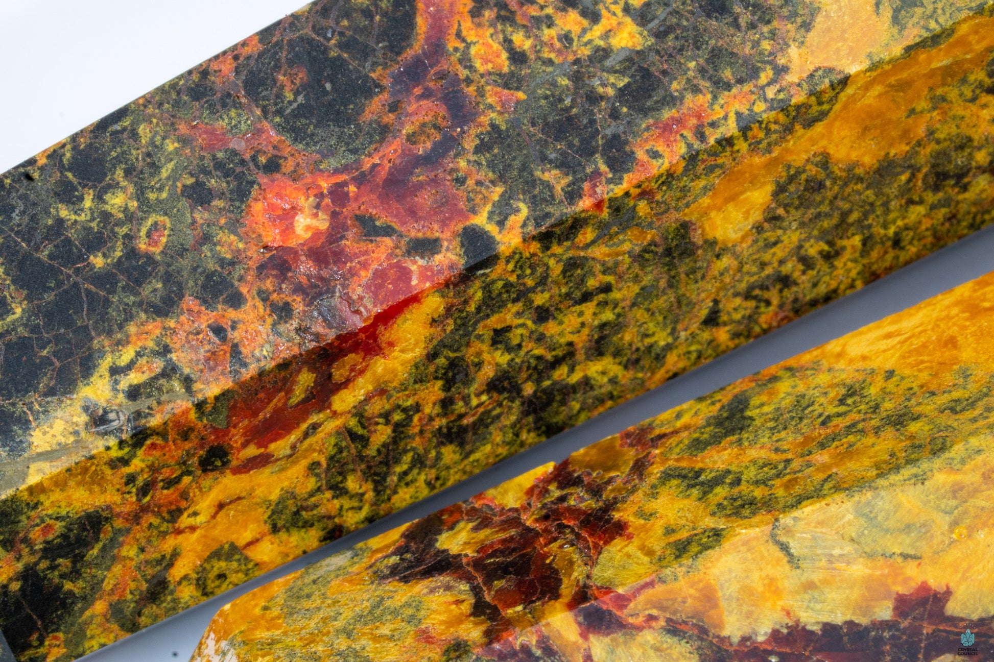 Realgar is an uncommon stone that nonetheless has a long history of traditional, ceremonial, and other uses. It resonates strongly with the lower three chakras, especially the second (sacral) chakra, igniting drive, passion, and creativity. It helps with writer’s or other creative blocks by bringing inspiration. Realgar helps bring newfound direction in life toward things that bring fulfillment. It supports transformation that opens the user to new energies and opportunities. This is a delicate stone, however: exposure to light causes dulling of color. Realgar includes a mineral that is toxic, so this stone should not be handled regularly—this is a stone to put in your space, not one to hold during meditation. Though handling these polished stones is not dangerous, it’s a good idea to wash your hands after doing so.