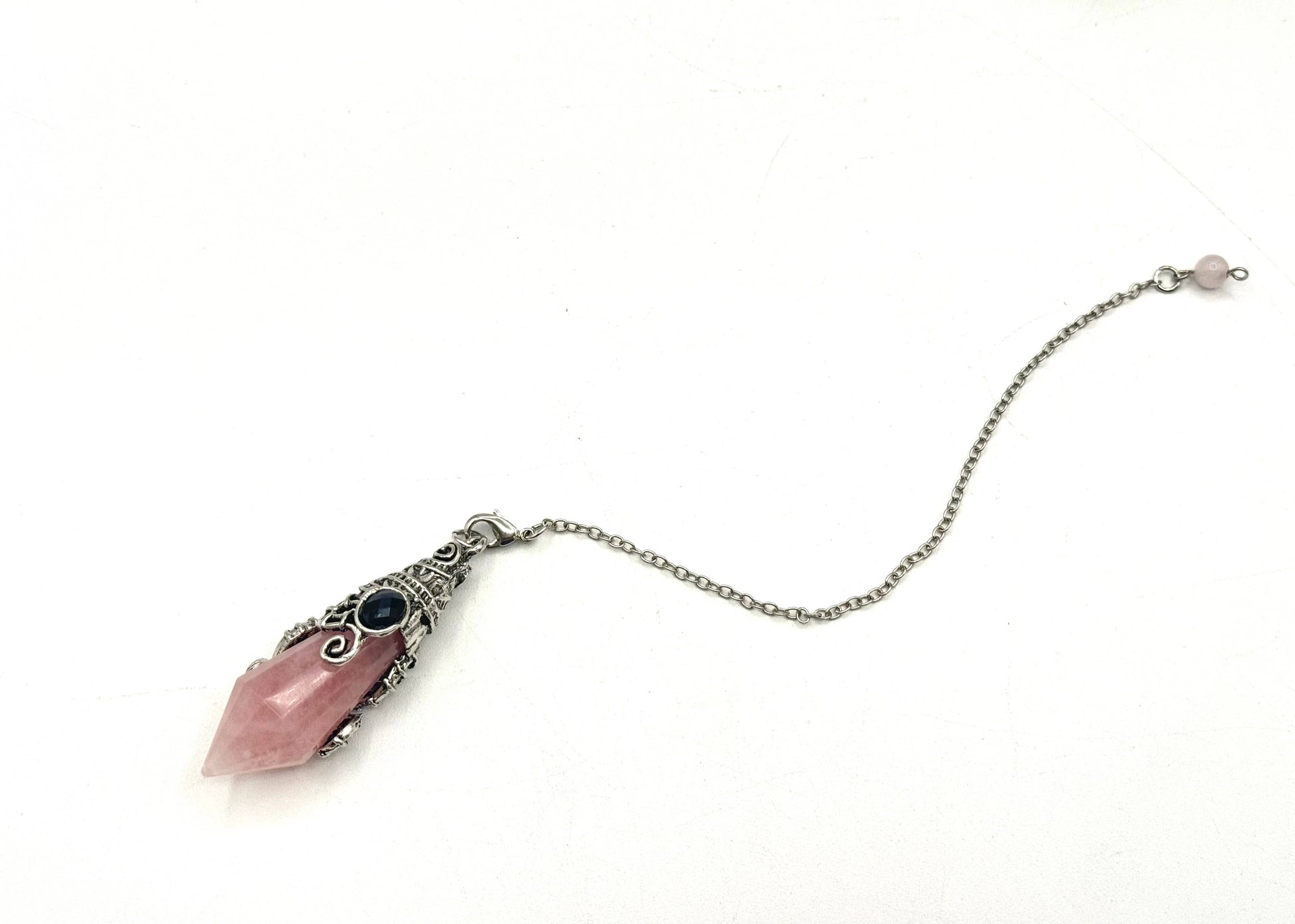 Rose Quartz Faceted Antique Silver Detailing Pendulum