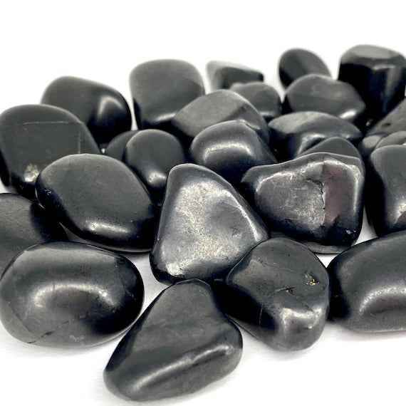 Shungite is made of 99% carbon and also includes small amounts of nearly all of the minerals in the periodic table. Interestingly, though it is primarily made of carbon, it is thought to be at least 2 billion years old, older than organic life on this planet. Because of this, we are unsure of its origins. When held or placed on the body, it can reduce inflammation and a host of common ailments, like headaches. Placed in the environment or on the body, it can shield the user from harmful electromagnetic radiation from computers, televisions, cell phones, and other electronics. It releases stress and tension, and it can be used to purify water—drop a clean shungite stone into your drinking water, let it soak for an hour or two, then remove it before drinking. Water infused with shungite carries all the same healing properties as the stone.