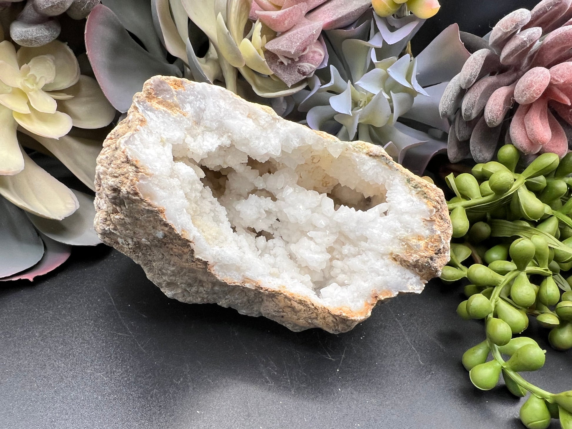 White calcite unlocks inner vision and brings clarity. It helps access psychic abilities and increases positive energy by absorbing toxic energy and negativity. A stone of purity and balance, it opens and balances all of the chakras, supporting spiritual growth and removing energy blocks. White calcite stimulates imagination and creativity and supports emotional healing.